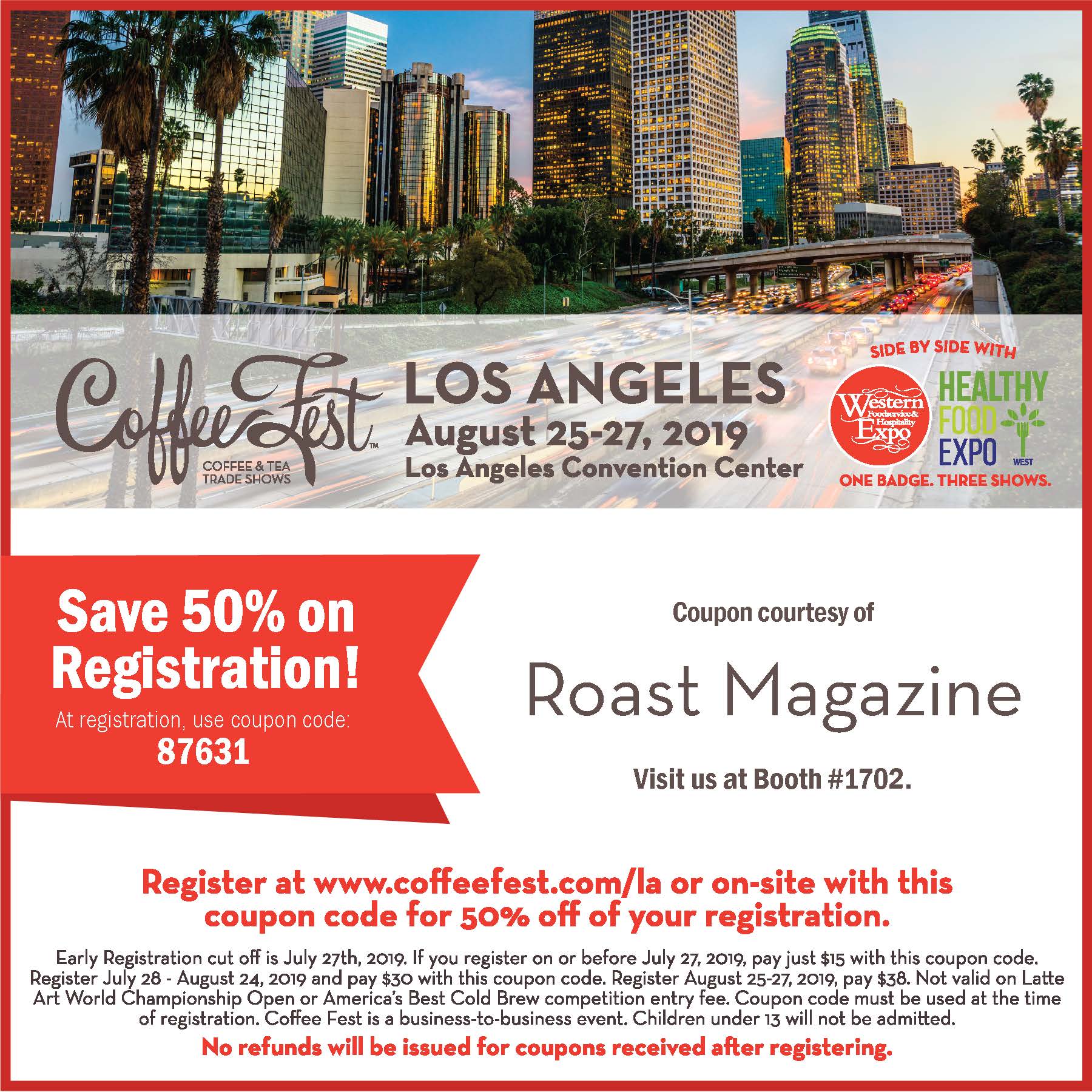 Roast Magazine On Twitter Join Us At Coffee Fest Los Angeles From August 25 27 2019 Use Coupon Code 87631 At Registration To Save 50 Visit Https T Co Ks2jq40vbw By The Early Bird Deadline